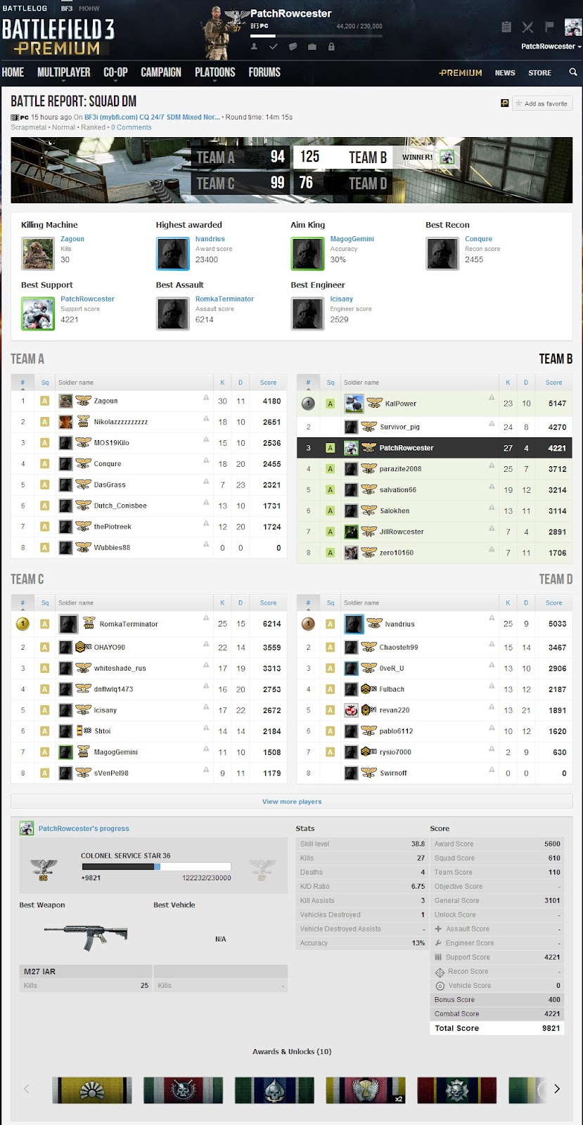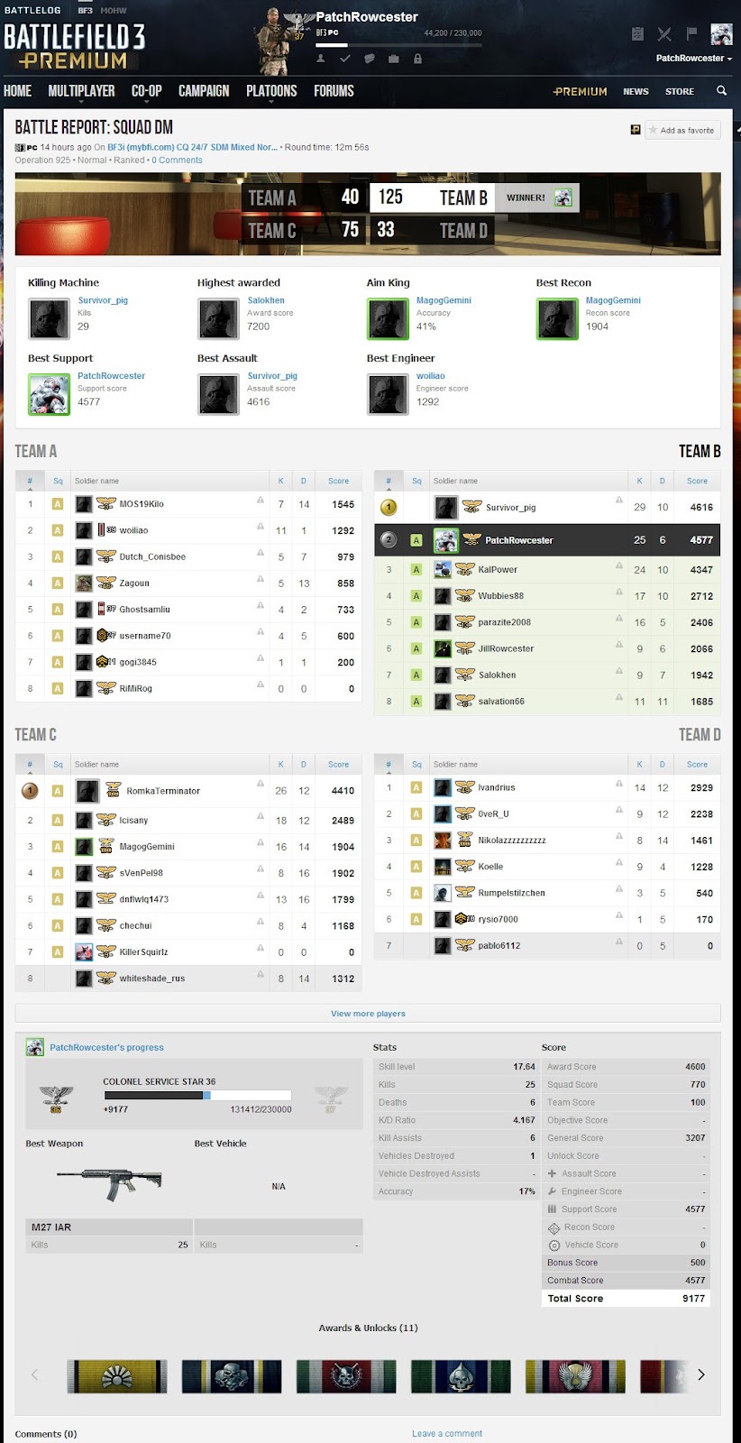 Following this victory, we wanted to play another round. This time it was Scrapmetal. My least favorite map. I don’t know why, I just hate this map. I don’t understand it very well. I decided to go assault, and that didn’t go very well. I went back to being support with M27. That worked very well. RomkaTerminator did get me a few times, but the team didn’t do very well, and we won the game. I was surprised I did as well as I did considering I was never any good at this map.