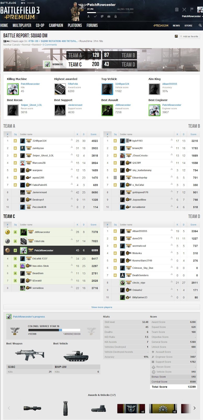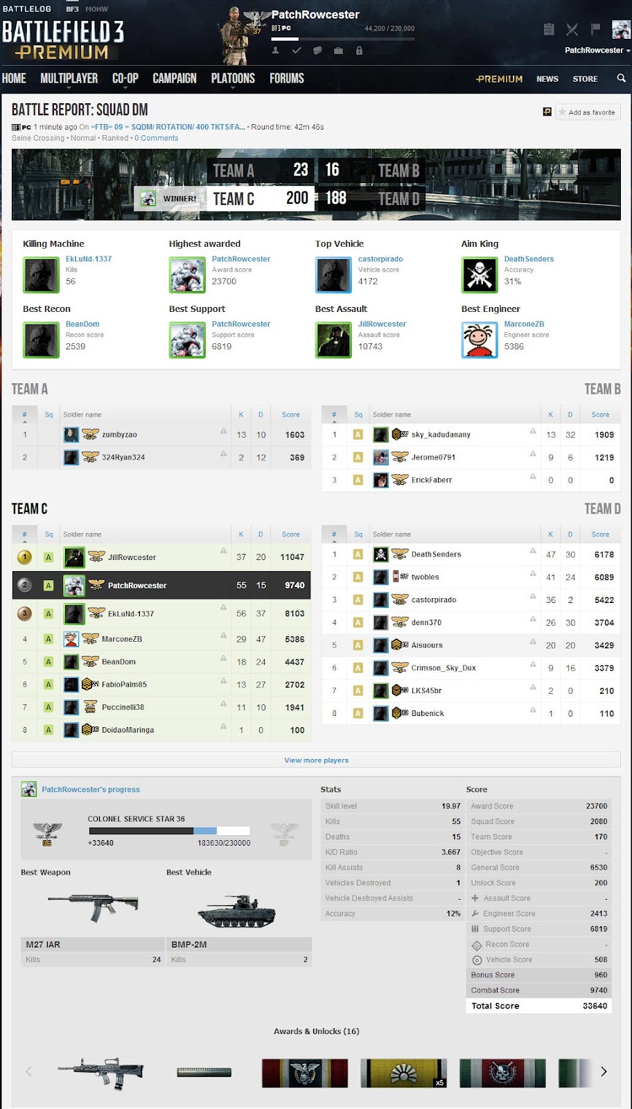 The round turned out to be very close. It was basically a battle between Squad C and Squad D. At one point of time, they got control of the vehicle, and were tailing us by 5 points. For whatever reason no one in my squad was going after the vehicle. I told my wife to provide me cover, and spawned as an engineer, and went after it with my SMAW. I ended up destroying the vehicle (the only time I did that in the round), and that turned the tide in our favor.