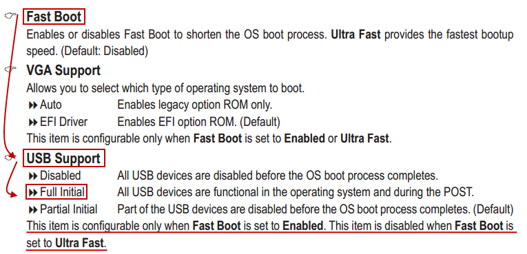 Enable Fast Boot -> Set it to Enable. This will now display USB Support options