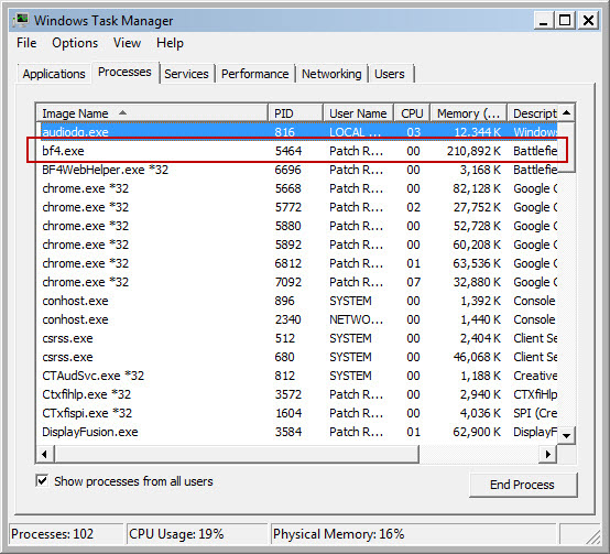 - At this point, BF4 consumes around 200MB, and then disappears:
