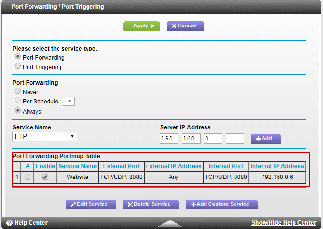192.168.0.1.Add a new rule for forwarding http traffic to port 8080
