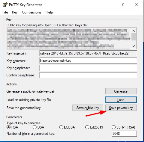 - Now click on Save private key option on PuTTYgen