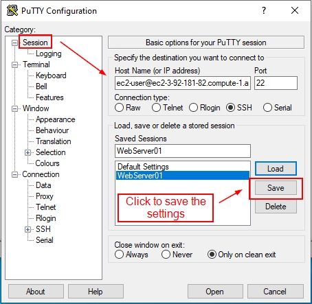 – 2.1. Configure the connection detailsHost Name: username@public_dns_name