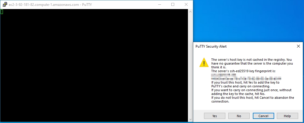 – 2.4. There is a security alert. If you trust the fingerprint (which I do), click Yes