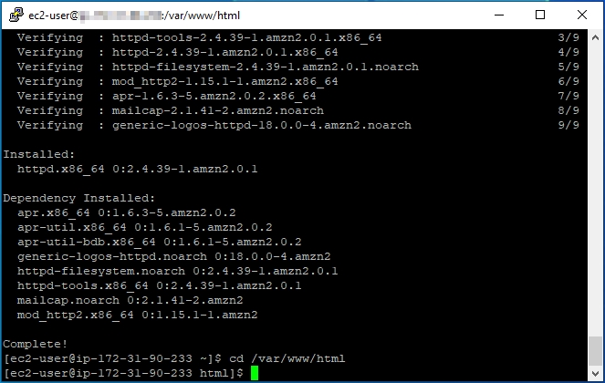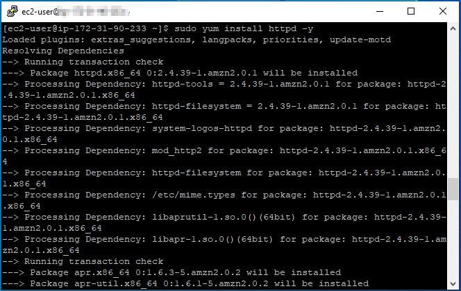 - To install Apache on the instance, type the following -