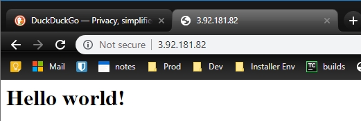 - Now access the public ip address of the instance through the browser, and you should see the following -