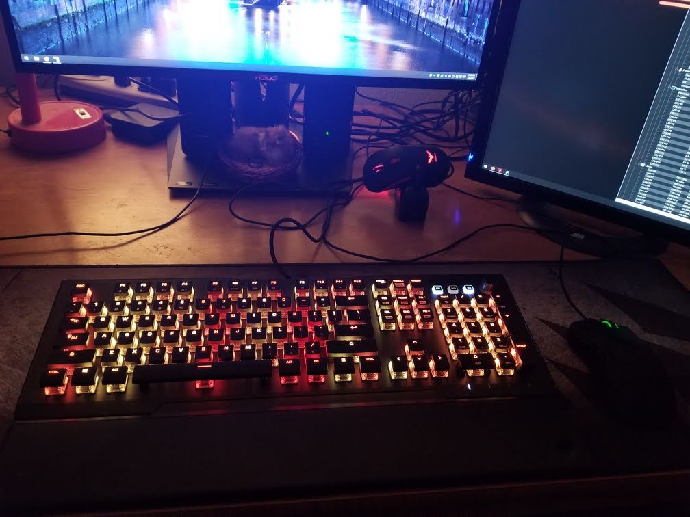 The Corsair K70 Low Profile keyboard with Cherry MX Speed switches is my favorite keyboard of all time. I think this is a very close second. I wasn’t sure if I would enjoy Cherry MX Brown switches, but I am happy to report that I do. I feel they are perfect for productivity. Although this keyboard is marketed as a gaming keyboard, I think I still prefer Speed switches for gaming. That said, I am going to try this keyboard for gaming for a while and see how I like it. I will try this as my primary keyboard for a while, and if I do not like it for gaming, I will swap this with my Corsair keyboard with Speed switches, and move this to my office setup.