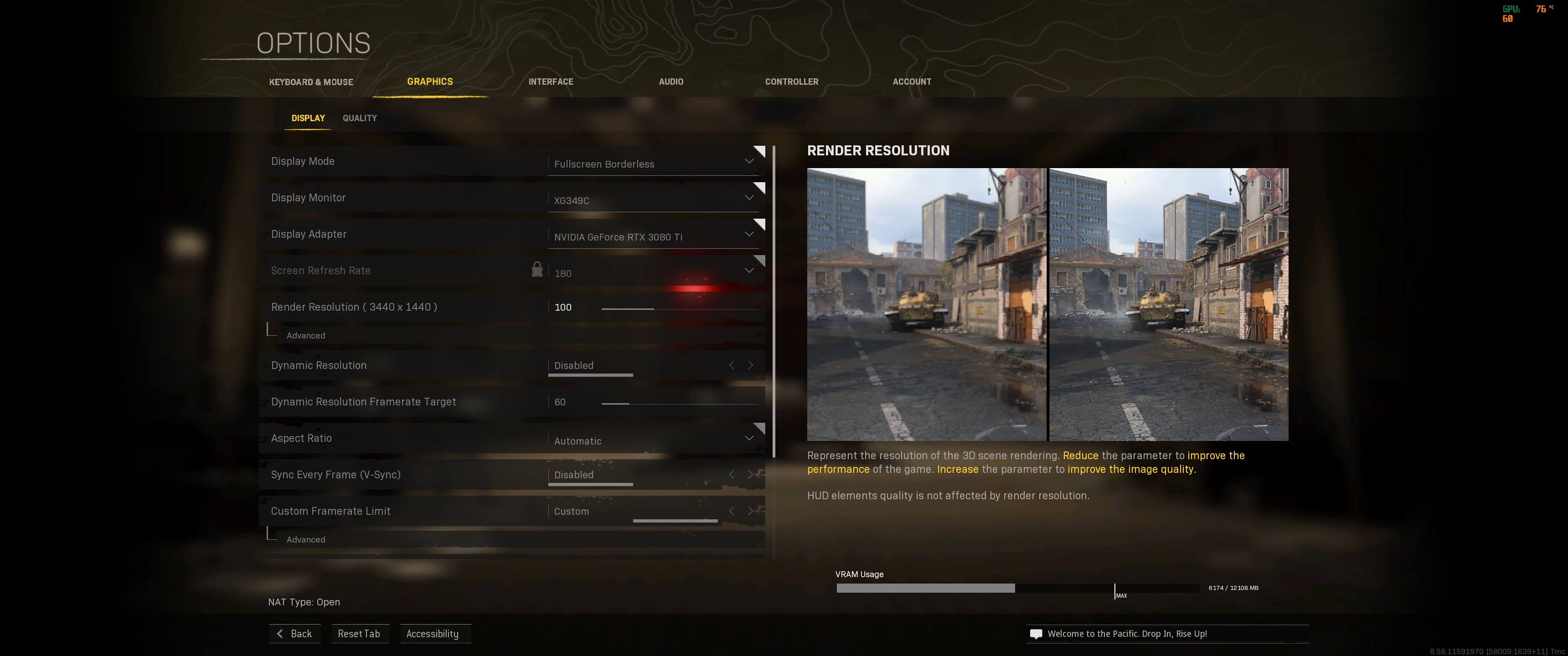 At this point, I was able to customize the graphics settings. When I set the resolution to the native value of 3440x1440, the game would around move all the windows that I have open on my secondary displays. This happens every time I started the game. It was quite annoying. Do developers not realize that most PC gamers have more than one monitor? Its the current year, and its disappointing to see modern games still struggle to work right with a multi monitor setup. In addition to this, any change to the graphics settings would make the game window flicker, and all the other windows I have open would go on a little adventure. Some would disappear entirely, and I would have to use the Move option in Windows to bring them back into view.