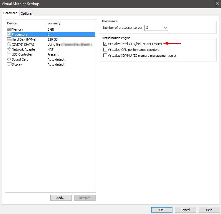 I was unable to enable virtualization on my Windows 10 VM on a Windows 10 host. I did have virtualization enabled in the BIOS, but that didn’t seem to help. When I check the box to enable this feature, Virtualize Intel VT-x/EPT or AMD-V/RVI, I would get an error.