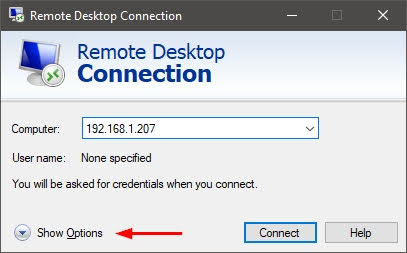 – Start -> Remote Desktop Connection or Start -> mstsc - Enter the IP address of the machine noted in the above step.
